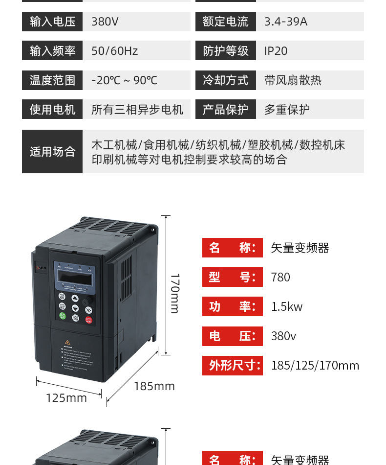 厂家供应780系列1.5KW-630KW风机水泵专用三相智能型矢量变频器